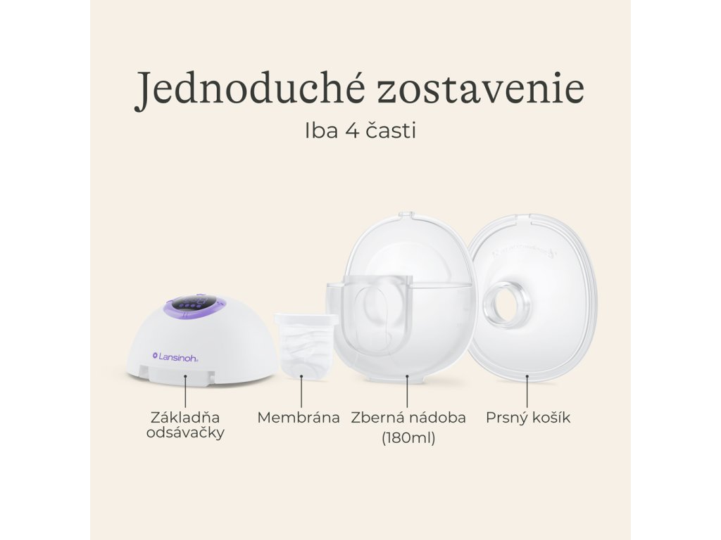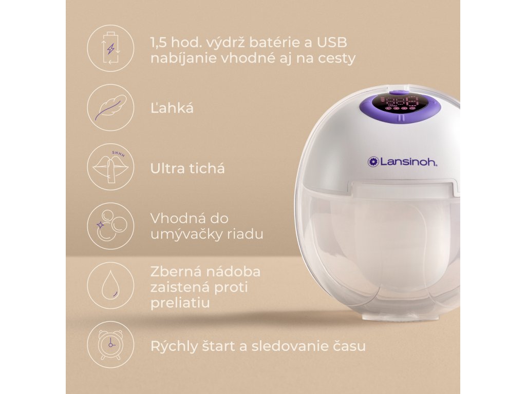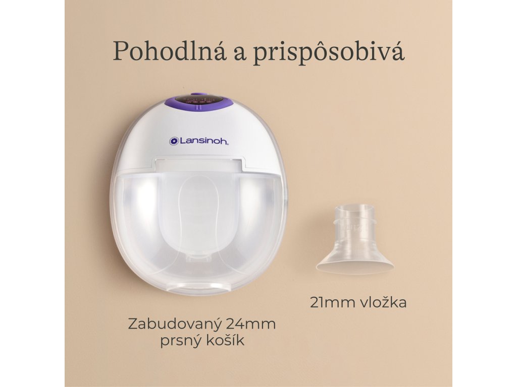 Lansinoh Handsfree elektrická odsávačka mateřského mléka se diskrétně vejde do podprsenky a bez hadiček. Umožňuje pohodlné odsávání kdekoli.