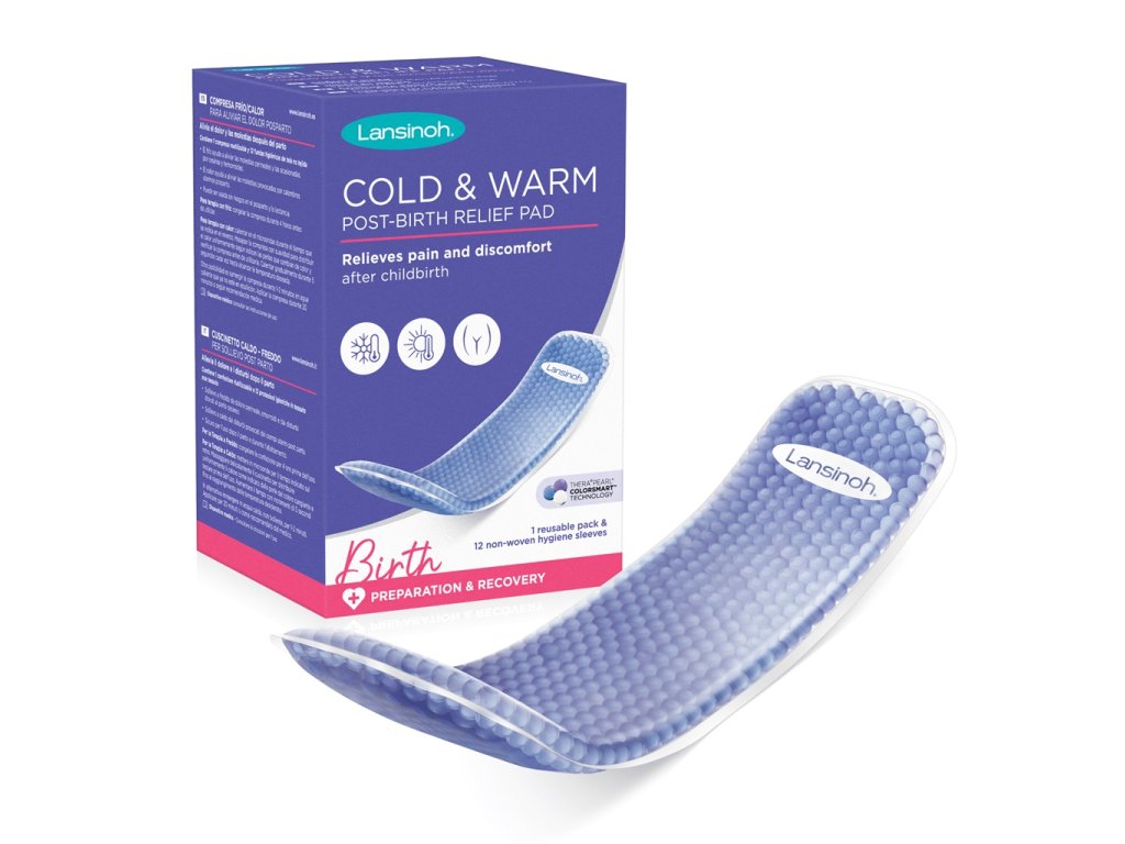 Opětovně použitelná Lansinoh teplá a chladící poporodní vložka pomáhá poskytnout uklidňující komfort a účinnou úlevu od bolesti po porodu.