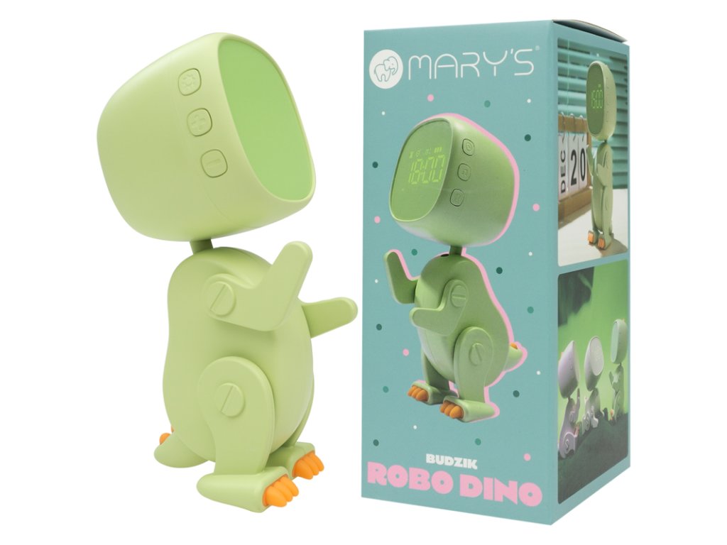 Mary's robotický budík Dino je ideální volbou pro děti, které potřebují nejen praktický budík, ale také stylový doplněk do svého pokoje. Díky svému kouzlu a funkčnosti se stane oblíbeným společníkem při jejich ranních rituálech!