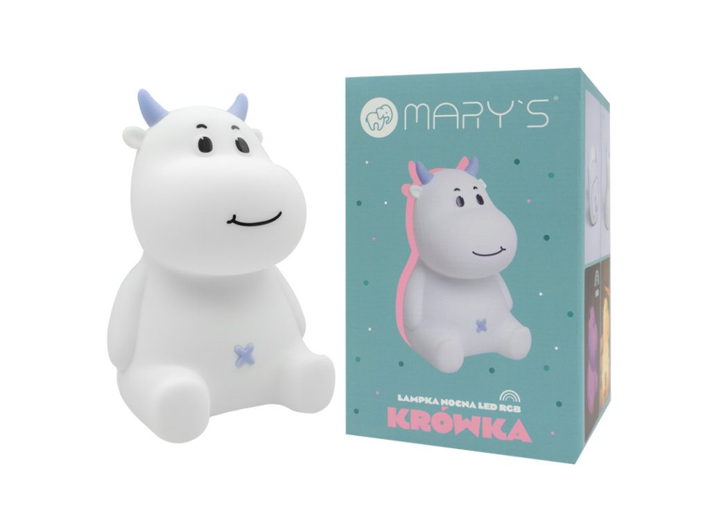 Mary's LED silikonová noční lampička RGB - kravička, modrá