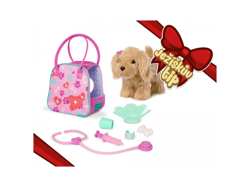Obsah balení: kabelka, plyšové štěně, 6 veterinářských doplňků