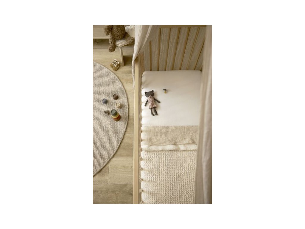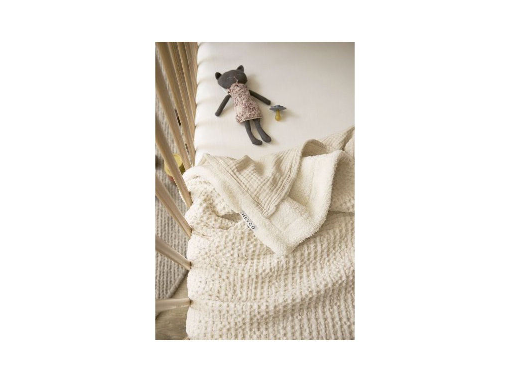 Deka je vyrobena ze 100% nebělené bavlněné vaflové tkaniny na přední straně. Úžasně měkká spodní strana je vyrobena ze 100% polyesterového teddy fleece. Nebělená bavlna se vyrábí bez použití škodlivých chemikálií a bělidel, což přispívá k udržitelnějšímu světu. Díky přirozené barvě a struktuře bavlněných vláken má přikrývka hodnotu TOG 2,0. Čím vyšší hodnota TOG, tím teplejší.