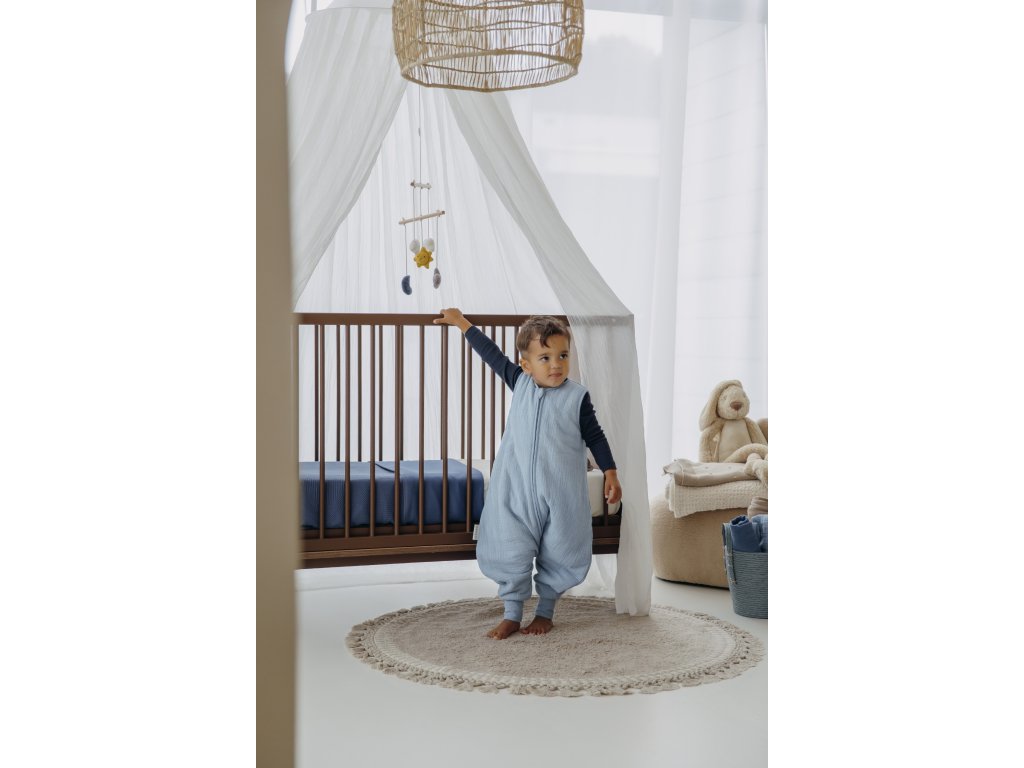Látka je vyrobena ze 100% hydrofilní bavlny, která zajišťuje měkký komfort a příjemné prostředí na spaní s dostatečnou ventilací a dobrou regulací vlhkosti. Během chladných nocí si vaše dítě může strčit nožičky do nožiček. Dlouhé rukávy také udrží miminko pěkně v teple. Dlouhý zip, který jde až dolů, usnadňuje oblékání a svlékání, usnadňuje přebalování vašeho dítěte. Spací vak na spaní má hodnotu TOG 2,0. Čím vyšší je hodnota TOG, tím je teplejší.