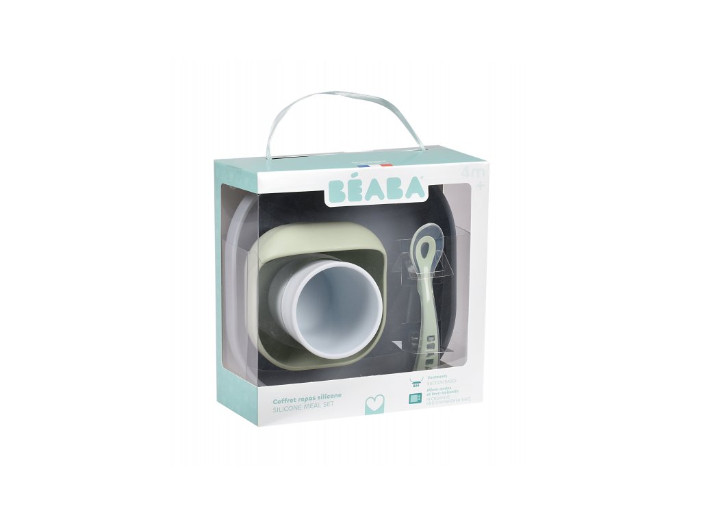 Sada talíře, misky, kelímku na pití a lžičky z vysoce kvalitního silikonu je ideální pro první samostatné krmení. Přísavka u misky a talíře umožňuje uchycení ke stolu nebo pultu jídelní židličky. Ergonomický tvar usnadňuje nabírání příkrmu.
