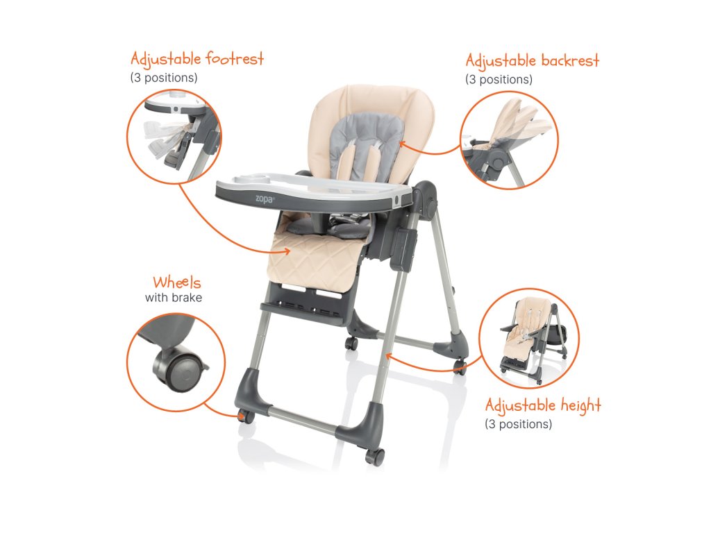 polohám opěrky na nožičky, 3 polohám vzdálenosti dítěte od pultíku se Monti 2