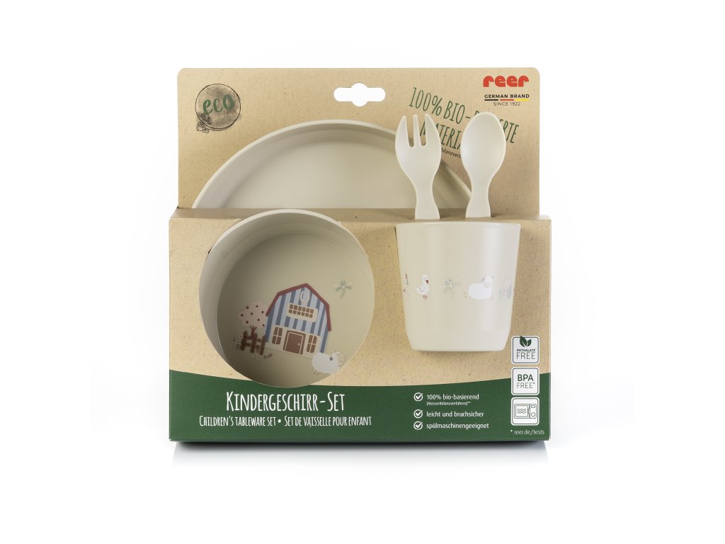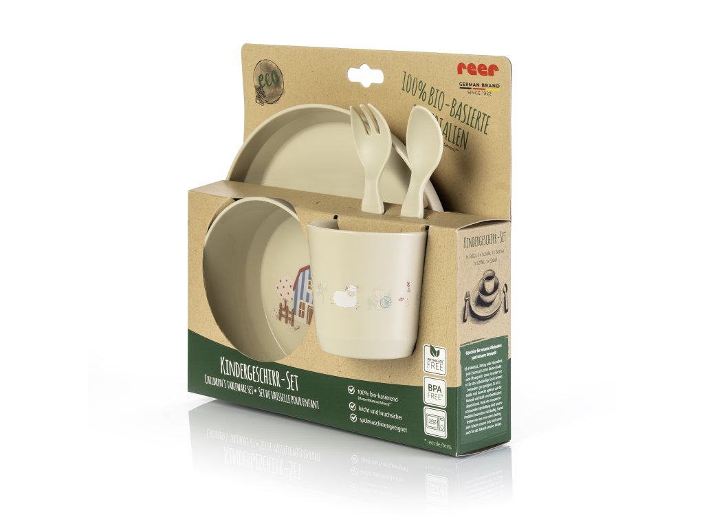 Dětská jídelní sada reer byla vyvinuta speciálně s ohledem na potřeby malých dětí. Je lehká, ergonomická a bezpečná. S pečlivě navrženým talířem, miskou, hrníčkem, vidličkou a lžičkou je ideální pro nácvik samostatného stravování a zároveň přináší radost z jídla.