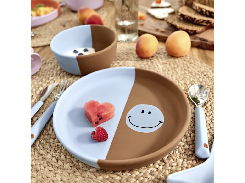 LÄSSIG Plate Silicone 2024 Happy Rascals Smile sky blue