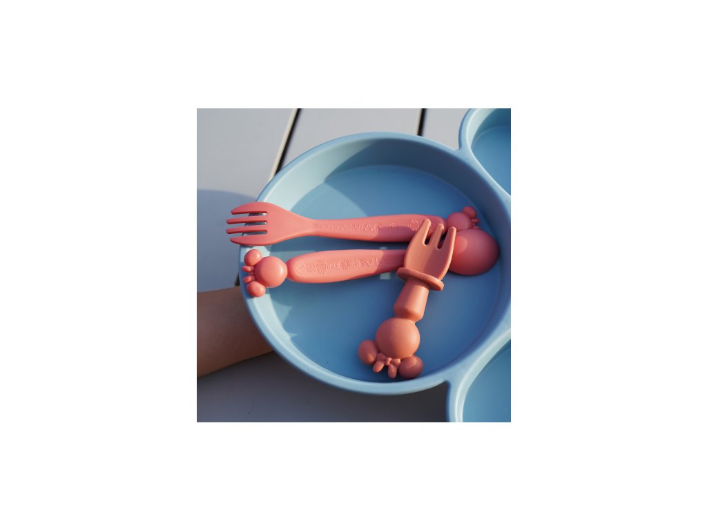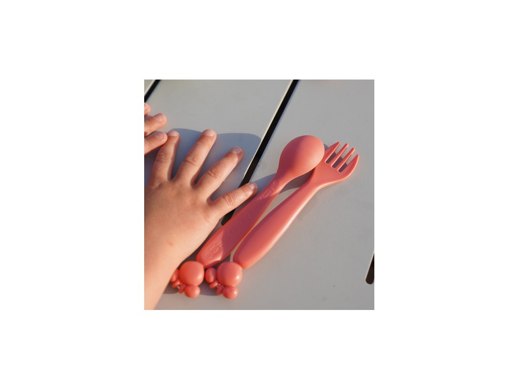 Příbory byly speciálně navrženy pro potřeby malých dětí – díky zaobleným okrajům si dítě neublíží a může se snadno naučit jíst samo.