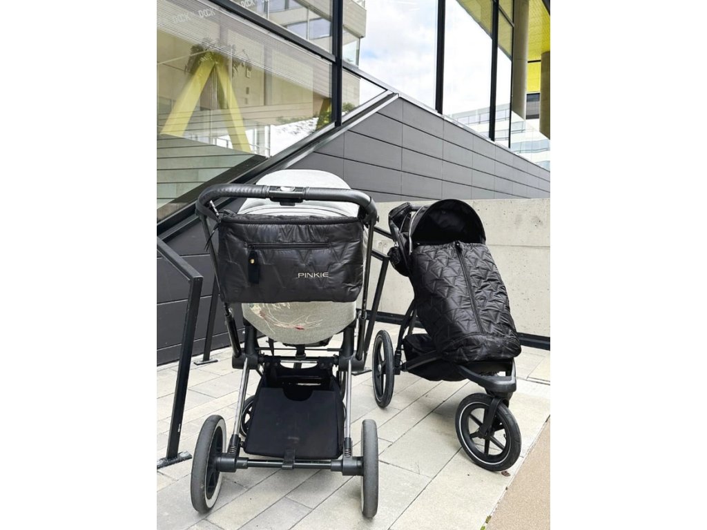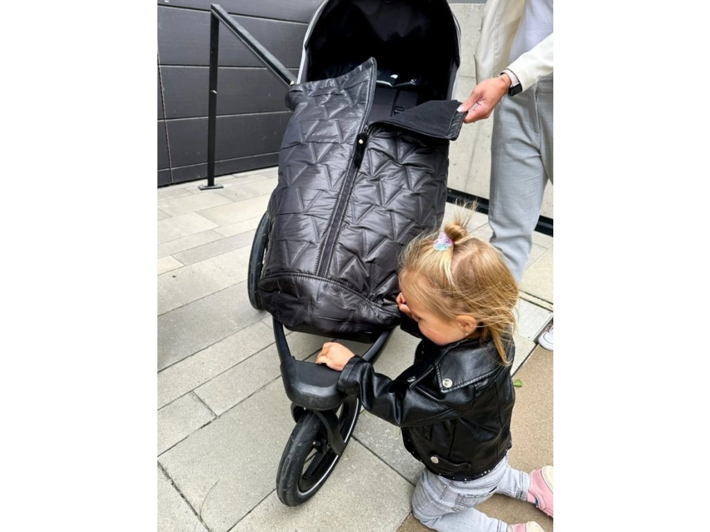 - přichycení nánožníku ke kočárku je řešeno popruhy a poutky ve třech úrovních, do kočárku tak nefouká