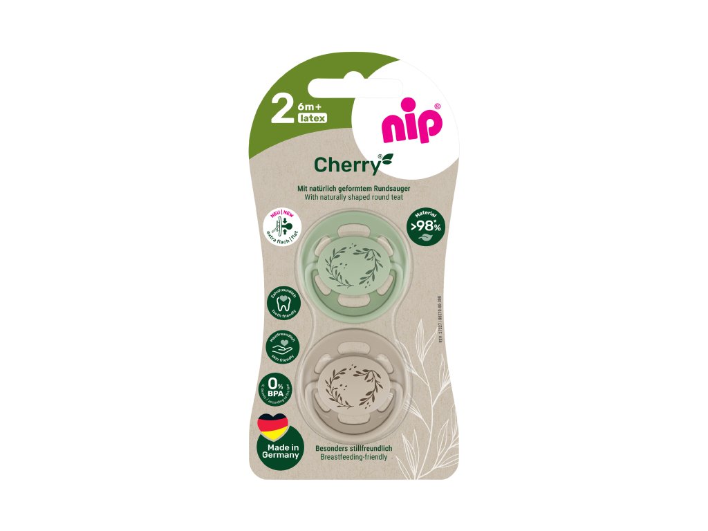 NIP CHERRY NATURE line šidítko, kaučuk,velikost 2 (6m+), 2ks, green/brown