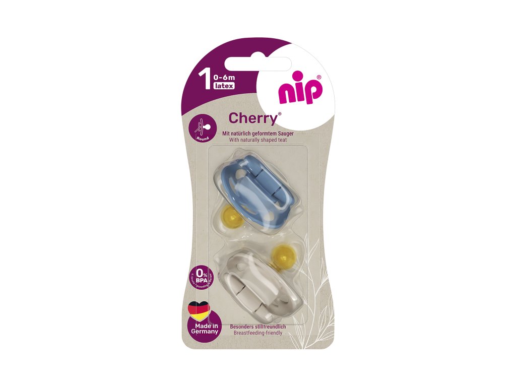 NIP CHERRY šidítko kaučuk, velikost 1 (0-6m),2ks,blue/brown