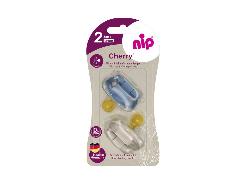NIP CHERRY šidítko kaučuk, velikost 2 (6m+),2ks,blue/brown