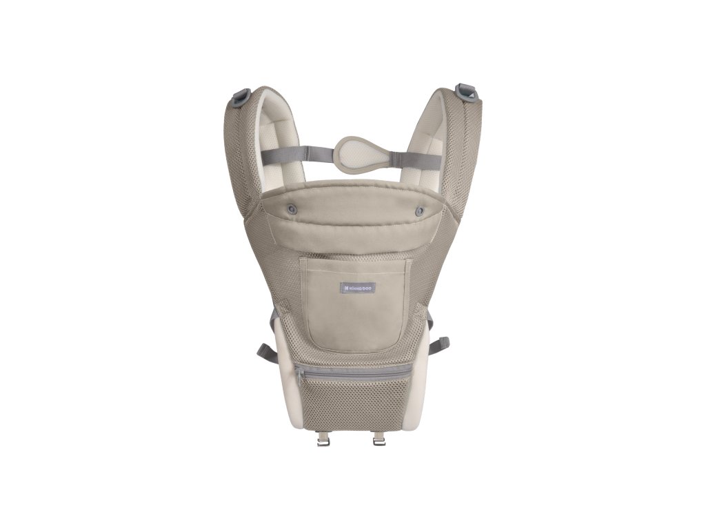 Široký bederní pás pomáhá rozložit váhu dítěte od pasu po horní část zad rodiče. Pohodlné nošení zaručují nastavitelné polstrované ramenní popruhy s hrudním pásem. Přední kapsa na zip umožňuje bezpečné uložení drobností.