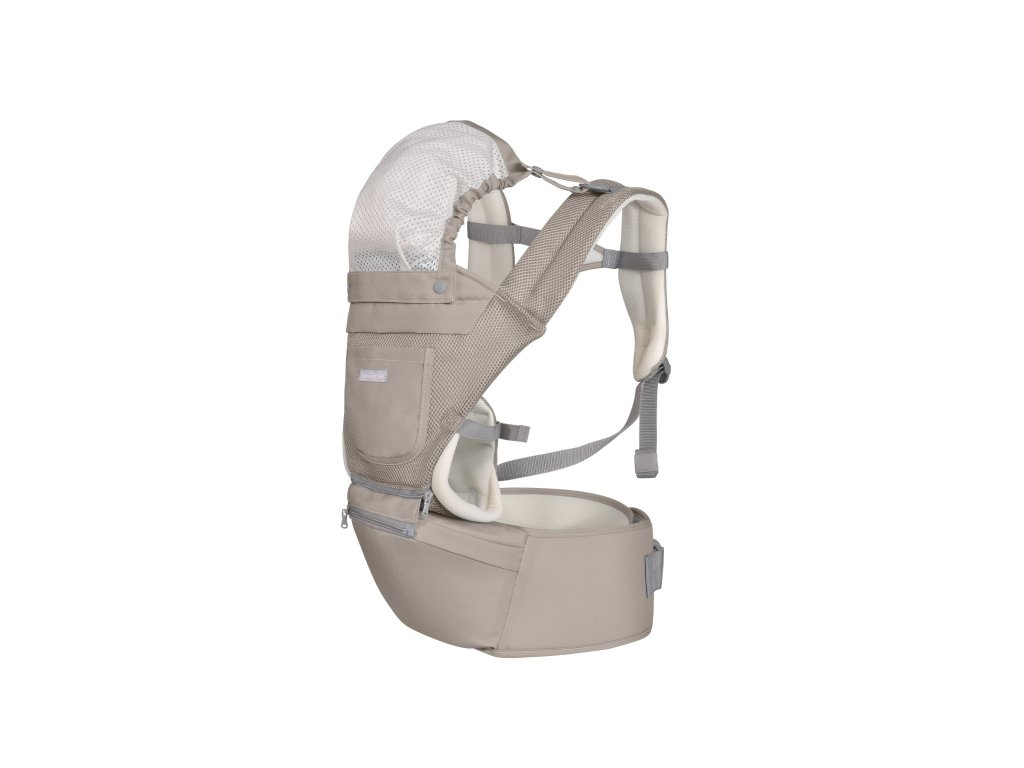 Nosítko je pro pohodlí dítěte vyrobeno ze síťovaného prodyšného materiálu. Skládací sluneční clona pomáhá chránit hlavičku dítěte před sluncem.