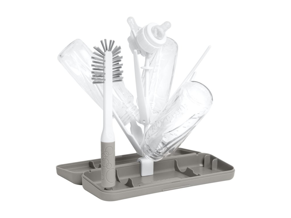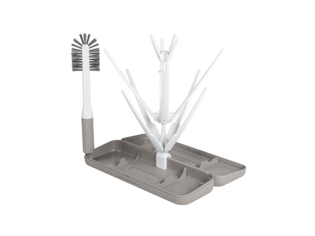 - 4dílná sada – obsahuje pouzdro, sušák, velký kartáč na láhve a menší kartáč na dudlíky.