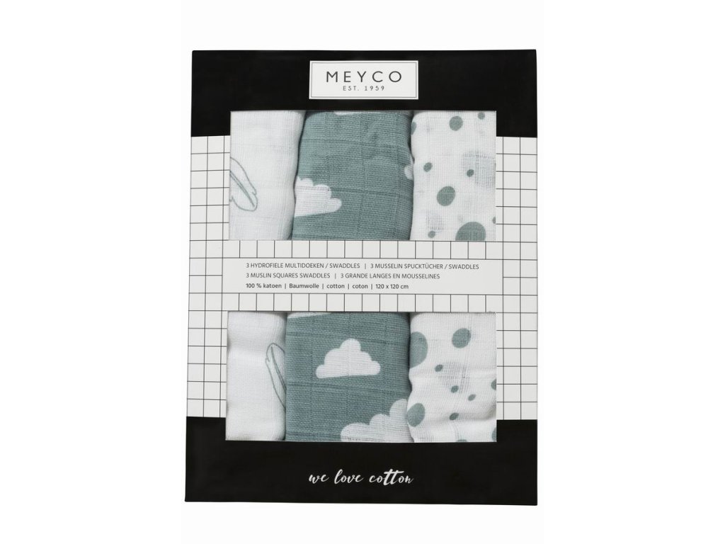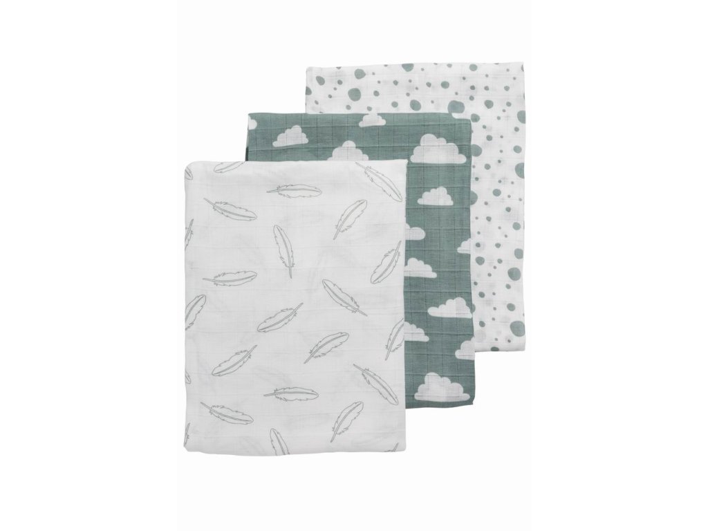 Meyco Pleny 3-balení Feathers-clouds-dots stone green/white