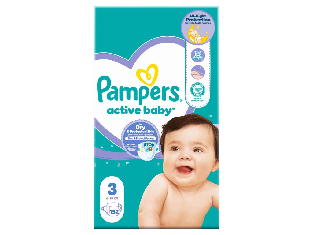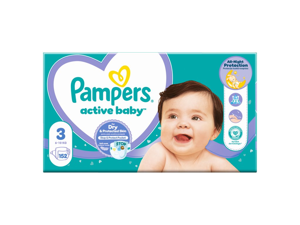 PAMPERS Active Baby Pleny jednorázové 3 (6-10 kg) 152 ks - MEGA PACK