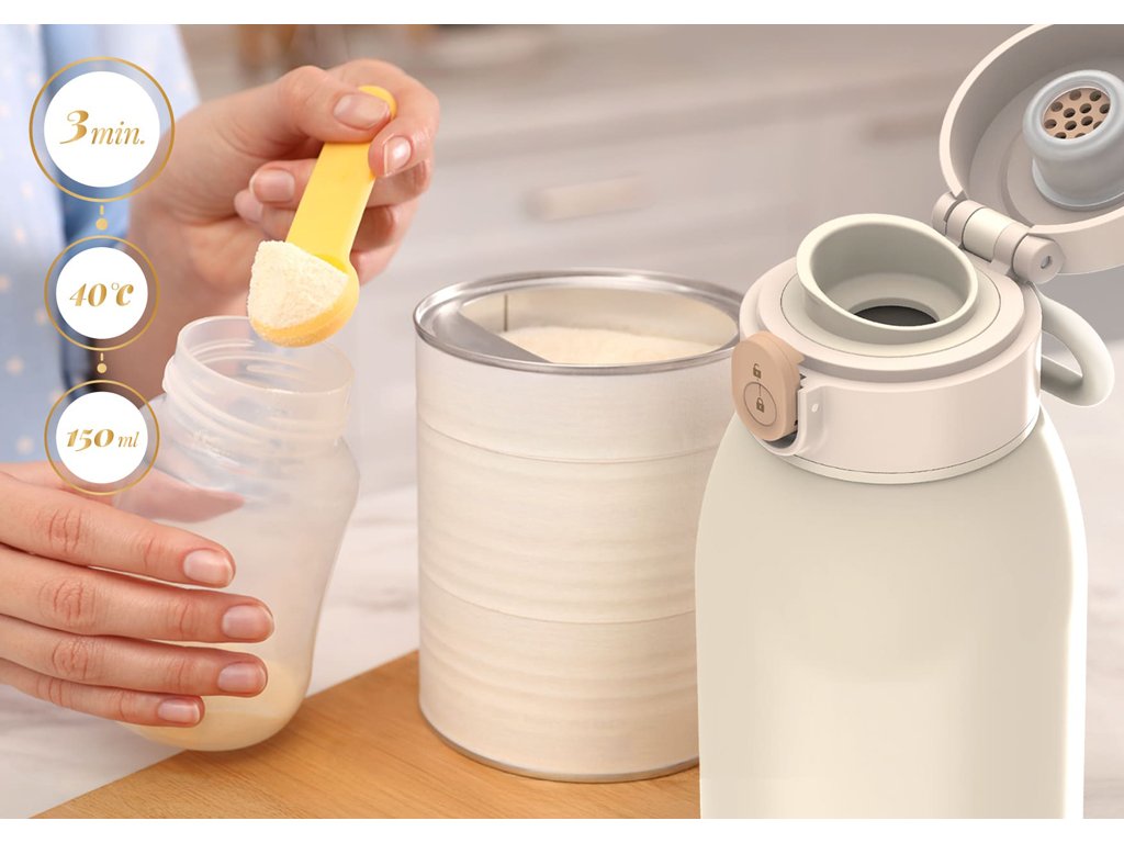 - Rychlá příprava: Za 3 minuty ohřívá 150 ml vody na ideálních 40°C (pokojové teploty), což je velmi efektivní pro rychlé podání jídla dítěti.