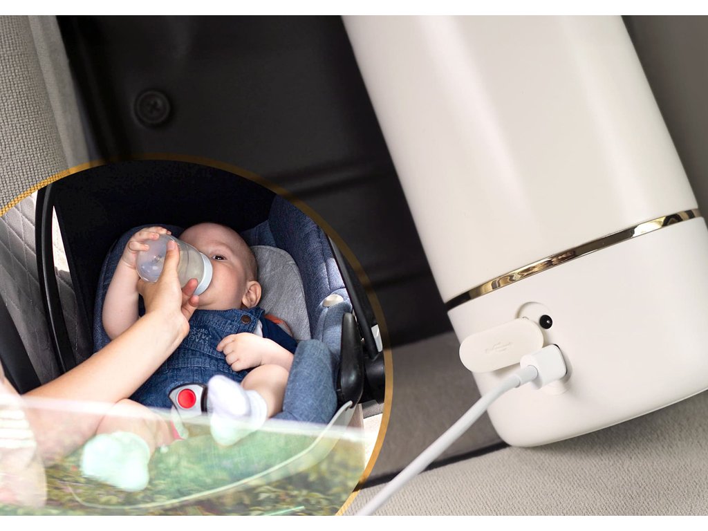 - Kompaktní a lehký design: Ohřívač je dostatečně malý, aby se vešel do vaší tašky. Je ideální pro procházky s dítětem či výlety nebo každodenní nákupy.