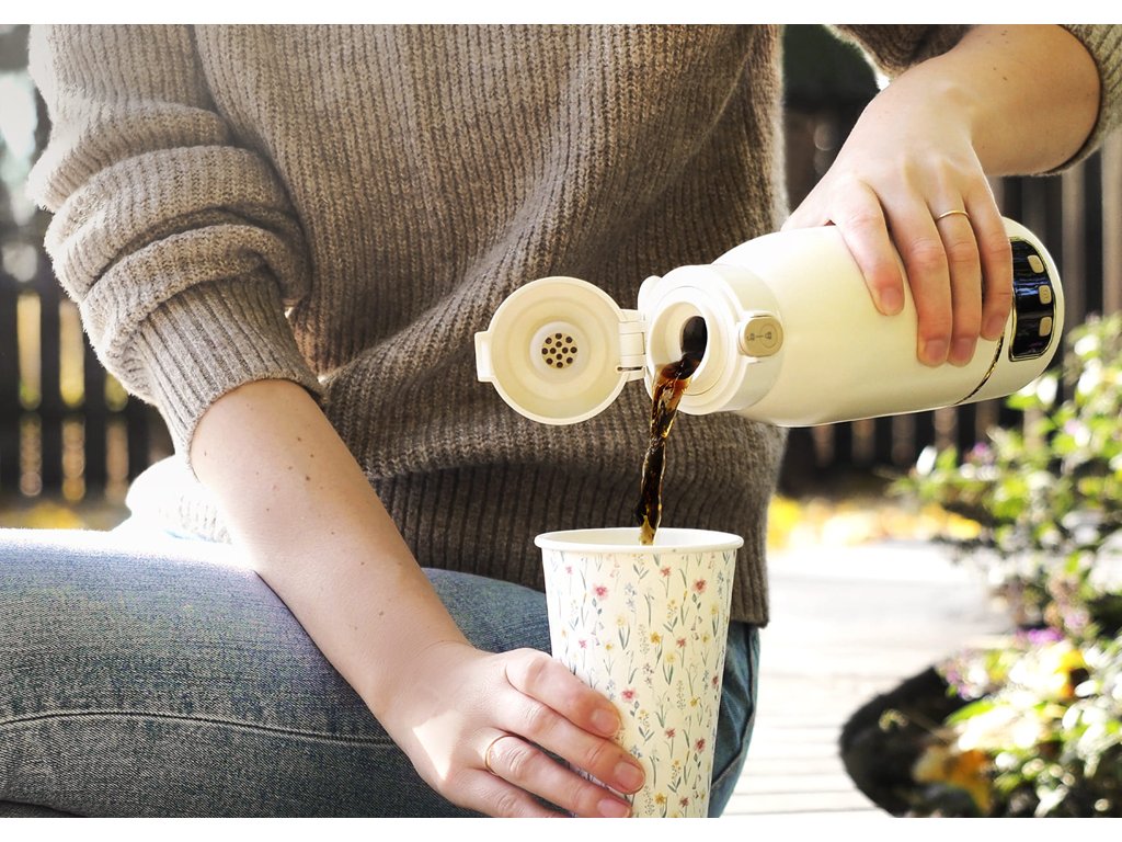 - Velká kapacita (500 ml): Má objem až 500 ml tekutiny, takže jedno ohřívání vydrží na déle. Tento praktický detail je užitečný během procházek, kdy budete potřebovat více horké vody.