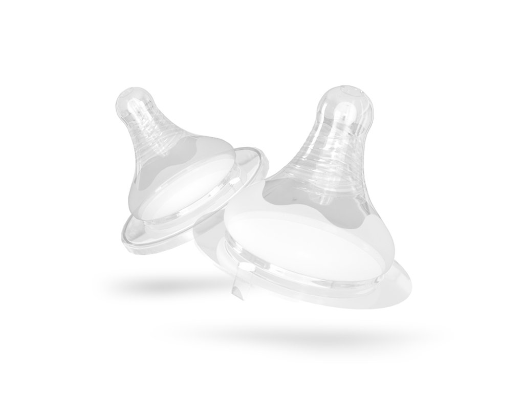 - Vyrobeno z měkkého, pružného silikonu, který nenarušuje sací reflex miminka. Speciálně tvarovaný design pomáhá předcházet poškození dudlíku.