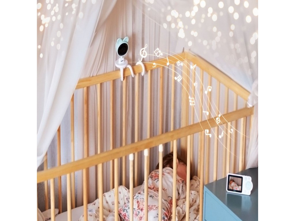 - Detekce zvuku – zařízení reaguje na pláč a zvuky v pokoji.