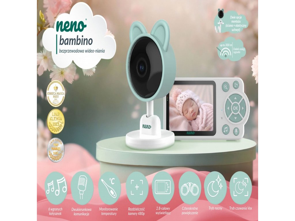 Bezdrátová video chůvička s dosahem až 300 metrů a velkým displejem! Neno Bambino je spolehlivá dětská chůvička, která vám pomůže získat klid a jistotu, že je vaše děťátko v bezpečí, ať jste v kuchyni, na zahradě nebo v ložnici. Díky obousměrné komunikaci, automatickému nočnímu vidění, vestavěnému teplotnímu senzoru a 6 uklidňujícím ukolébavkám vždy víte, co se děje v dětském pokoji – ve dne i v noci.