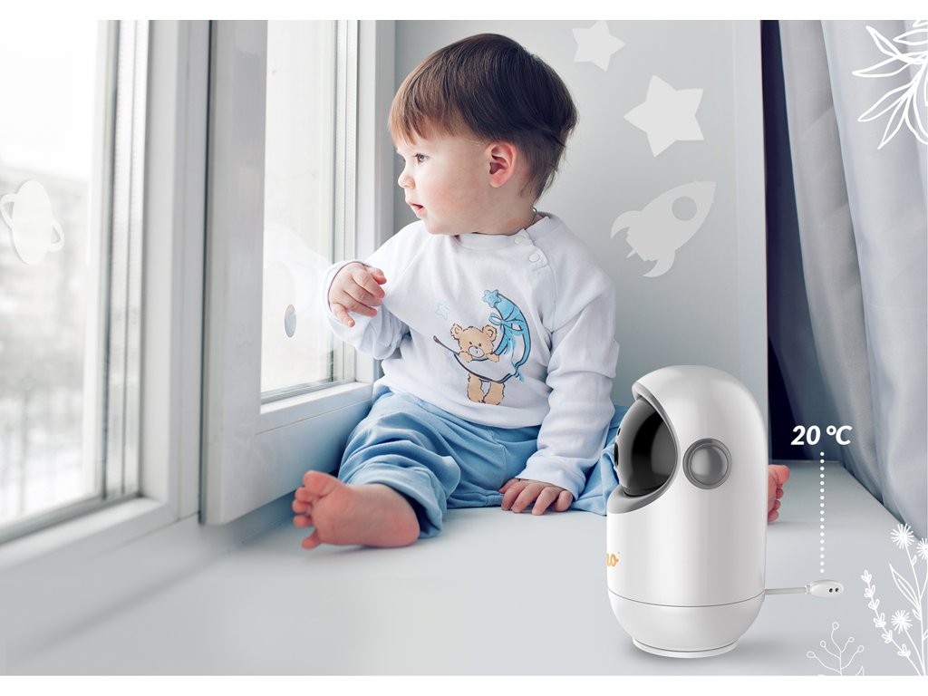 - Má zabudovaný teplotní senzor, díky kterému můžete snadno regulovat teplotu v pokojíčku vašeho miminka a víte, jestli mu není příliš teplo nebo zima.