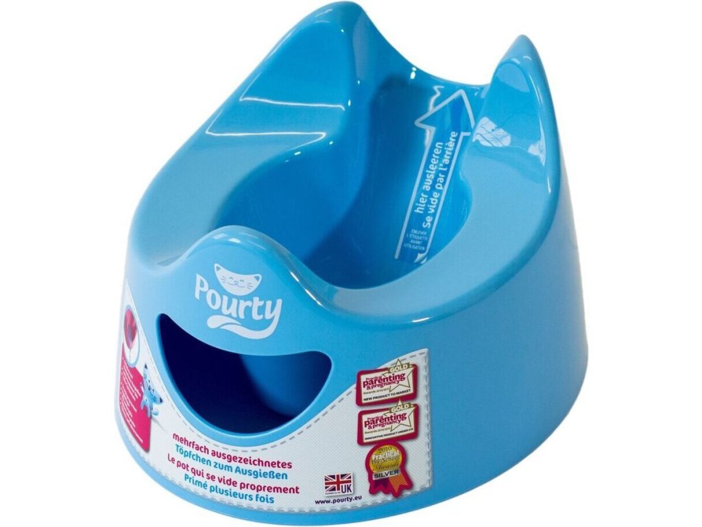 Jedinečný nočník Pourty se speciálním odtokem určitě usnadní přechod z pleny na nočník. Pourty byl vyvinut tak, abyste se při vyprazdňování nedotkli místa, kde sedí dítě a aby rozlitý obsah neznečistil celý nočník – možnost vyprazdňovat obsah nočníku zezadu. Denní používání nočníku se stává jednodušším a hygieničtějším.