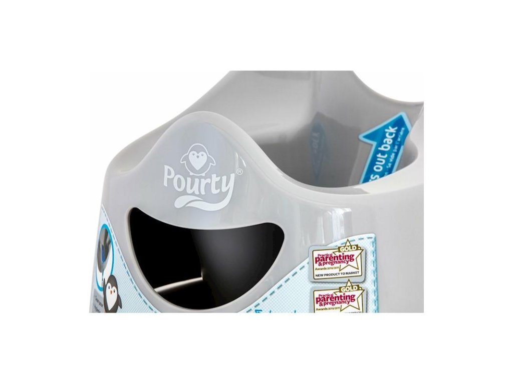 Jedinečný nočník Pourty se speciálním odtokem určitě usnadní přechod z pleny na nočník. Pourty byl vyvinut tak, abyste se při vyprazdňování nedotkli místa, kde sedí dítě a aby rozlitý obsah neznečistil celý nočník – možnost vyprazdňovat obsah nočníku zezadu. Denní používání nočníku se stává jednodušším a hygieničtějším.