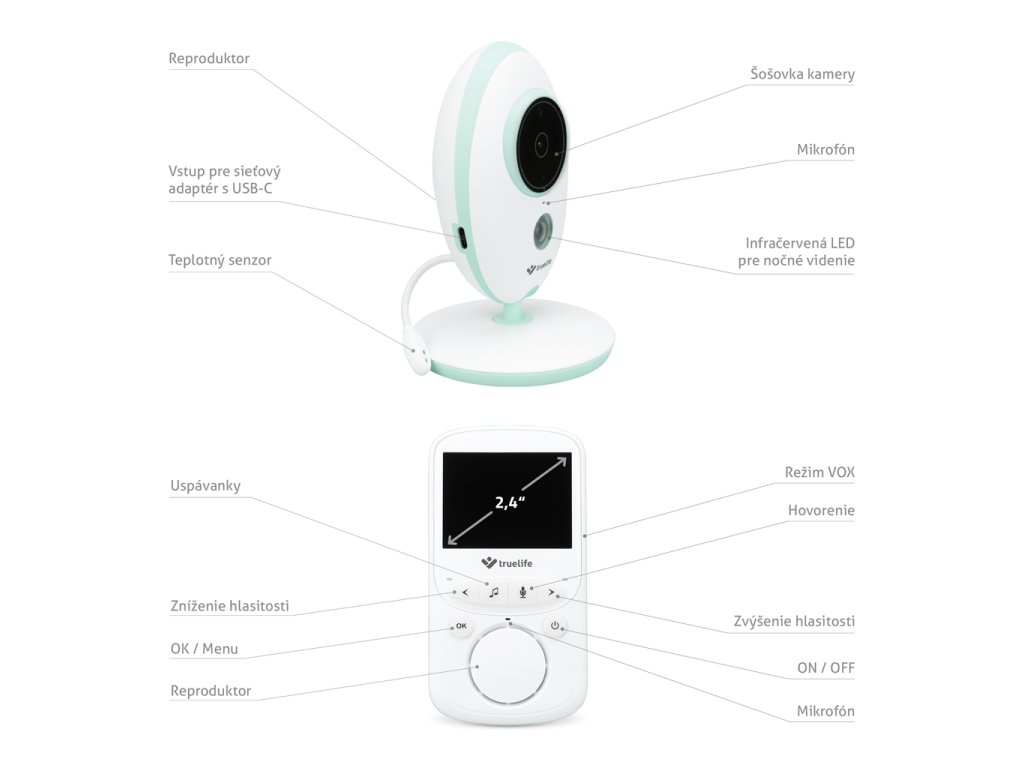 Oblíbená chůva, ověřená zákazníky, TrueLife NannyCam V24 ve vylepšené verzi je zde. TrueLife NannyCam V24 Pro je digitální video chůvička s přehledným barevným 2,4 palcovým LCD displejem, pokojovým teploměrem, automatickým nočním módem a moderním USB-C připojením pro rychlé a spolehlivé nabíjení. Přenos zvuku i obrazu je vysoce kvalitní ve dne i v noci. Můžete být v klidu a mít jistotu, že je s Vašimi blízkými vše v pořádku, neboť použitá digitální technologie s frekvencí 2.4 GHz zaručuje bezpečný a stabilní signál.