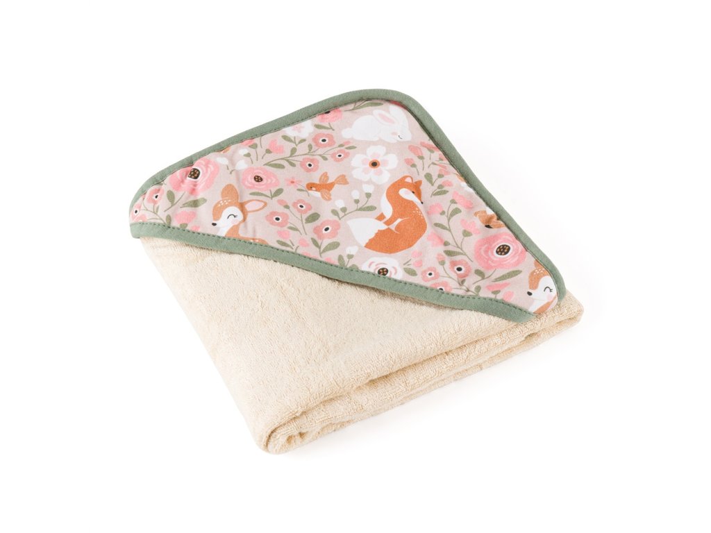 PETITE&MARS Osuška bambusová s kapucí Loulou Rosy Wilderness 100 x 100 cm