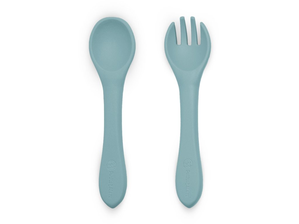 Souprava sestávající z vidličky a lžičky je celá vyrobena z potravinářského silikonu bez obsahu BPA. Díky tomu může vaše dítě jíst příborem teplá i studená jídla. Díky pružnému silikonu je příbor ideální pro citlivé dásně malého dítěte. Příbor je vhodný pro děti od 6 měsíců, které se seznamují s pestrou stravou, a pro ty, které se již úspěšně učí jíst samy. Zaoblené tvary a malé rozměry usnadňují děťátku jejich uchopení a tím i papání.