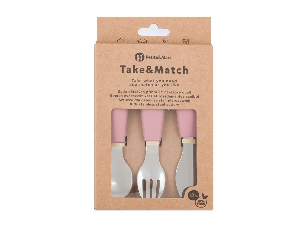 PETITE&MARS Sada příborů s nerezové oceli Take&Match Dusty Rose 12m+