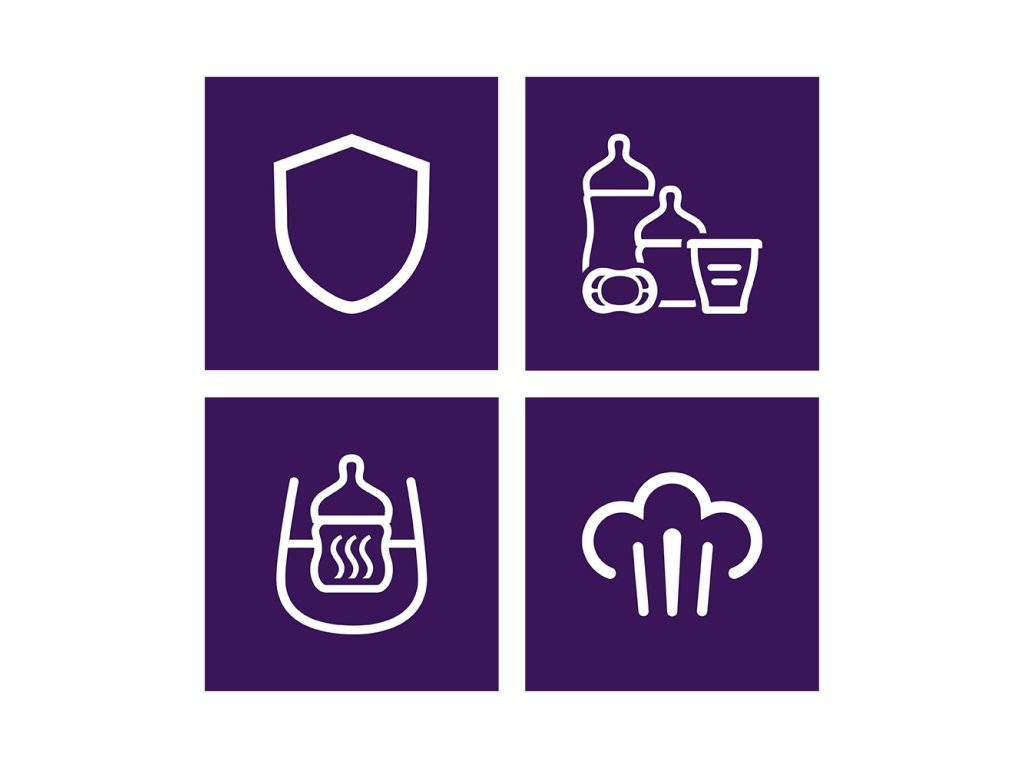 - Kompatibilní s většinou kojeneckých lahví a nádob na dětskou stravu
