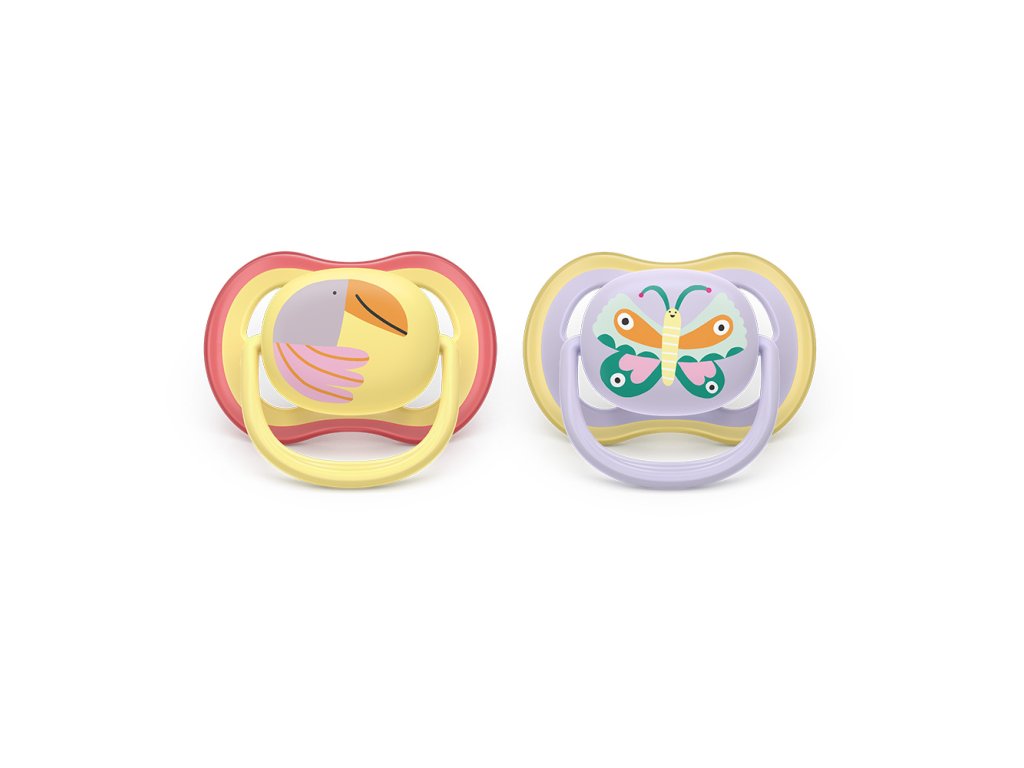 Philips AVENT Šidítko Ultra air fialová/žlutá 0-6m obrázek dívka, 2ks