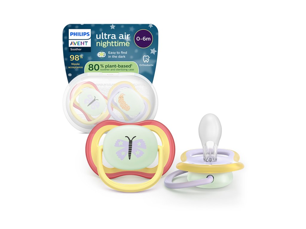 souhlasí, že šidítka Philips Avent Ultra air jsou pro děťátko pohodlná.** A svítí ve tmě,