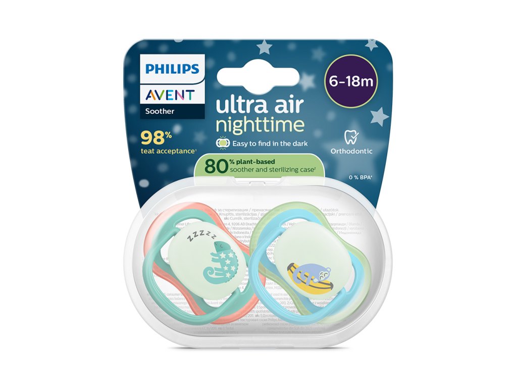 Philips AVENT Šidítko Ultra air noční 6-18m chlapec, 2ks