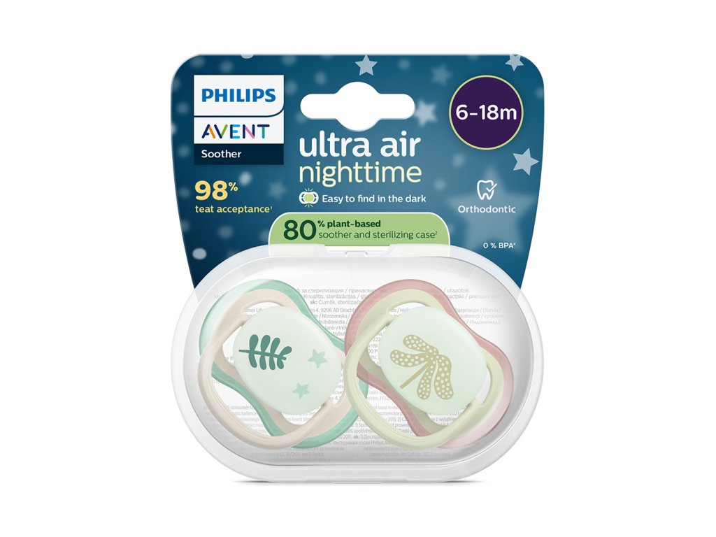 Philips AVENT Šidítko Ultra air noční 6-18m neutral, 2ks