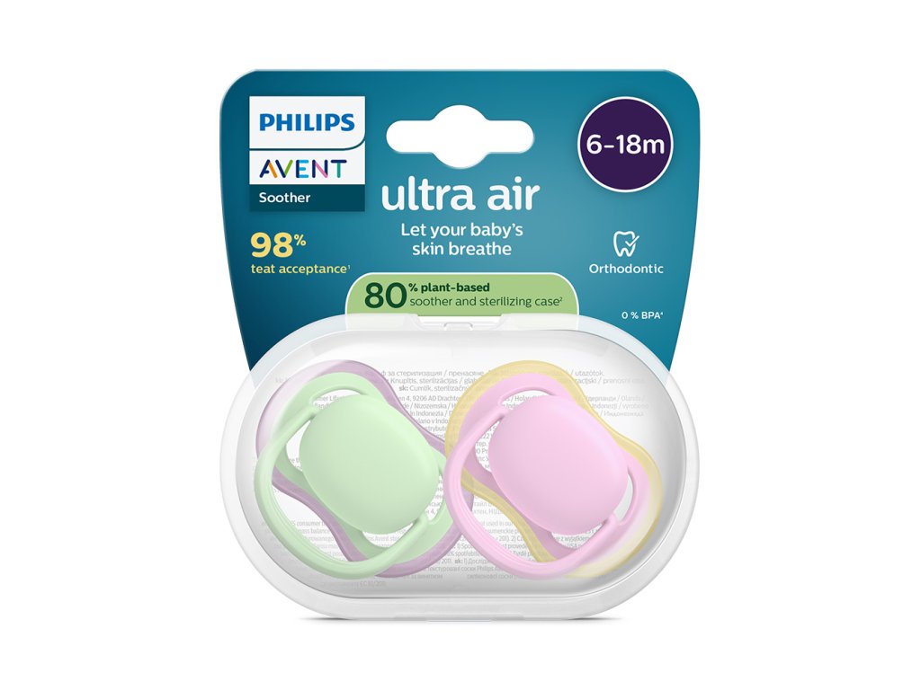 Philips AVENT Šidítko Ultra air růžová/zelená 6-18m dívka, 2ks