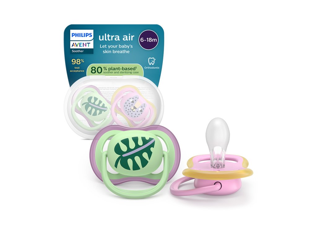 Philips AVENT Šidítko Ultra air růžová/zelená 6-18m obrázek dívka, 2ks