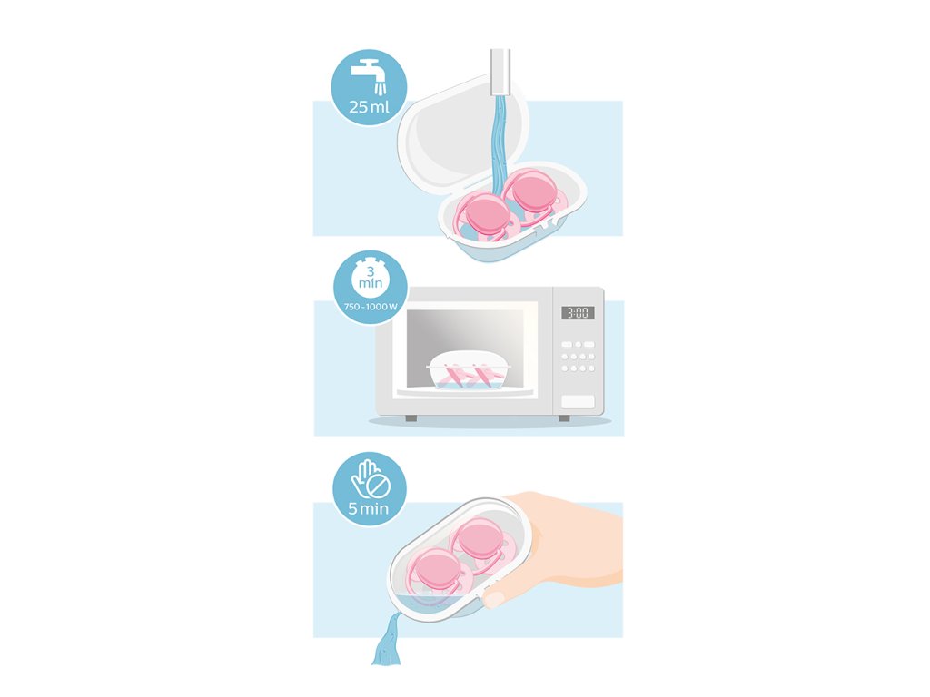 Před prvním použitím: Vložte dudlík na 5 minut do vroucí