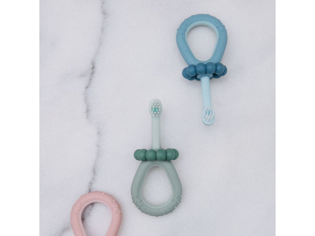 - Masážní kousátko na dásně (0 m+) - 100% silikon, různé tvary a textury pro masáž dásní při prořezávání zoubků