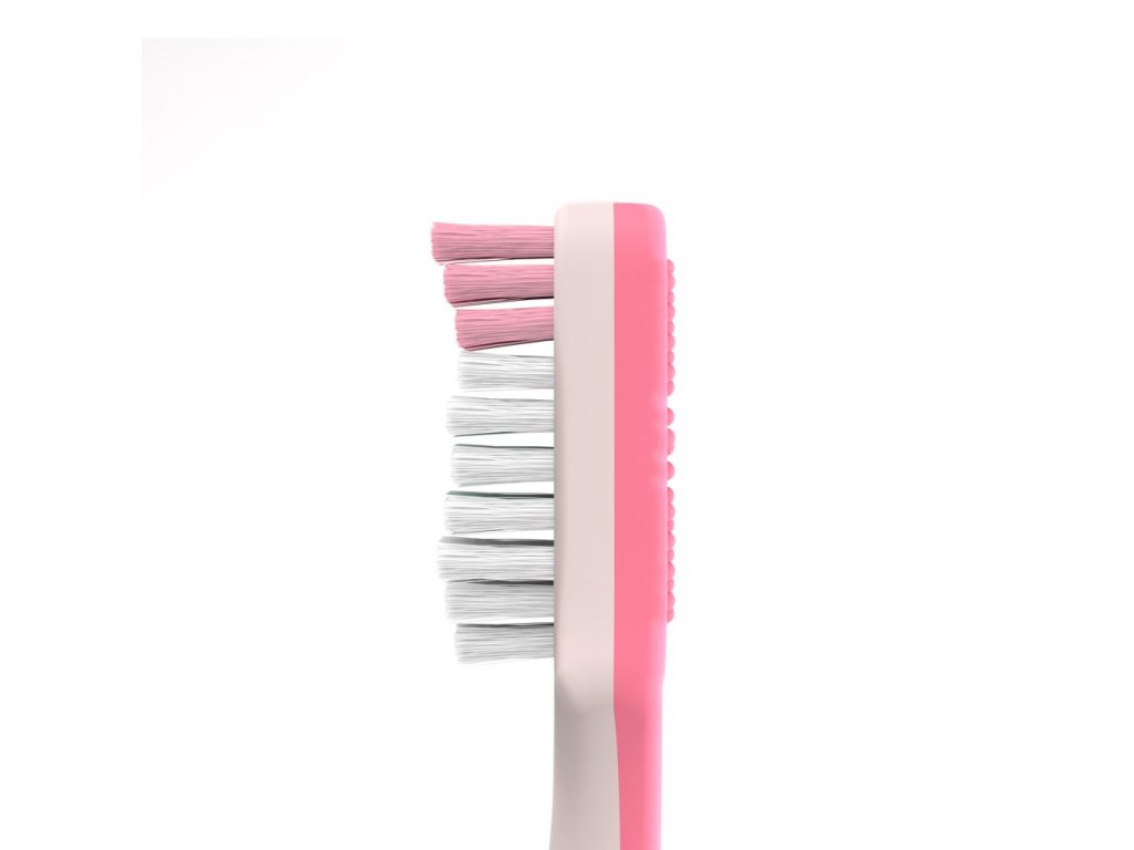 - Má měkké štětinky uspořádané do tvaru ´Z´, které lépe dosáhnou do těžko dostupných míst. Barevné označení na štětinkách pomáhá rodičům snadno dávkovat správné množství zubní pasty - velikosti hrášku