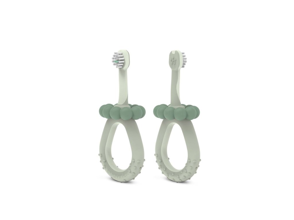 Masážní kartáček na dásně vyrobený ze 100% silikonu má různé tvary a textury, které jemně masírují podrážděné dásně miminka během prořezávání zoubků. Díky ergonomickému designu snadno dosáhne do celé ústní dutiny a pohodlně se drží i v malých dětských ručičkách.