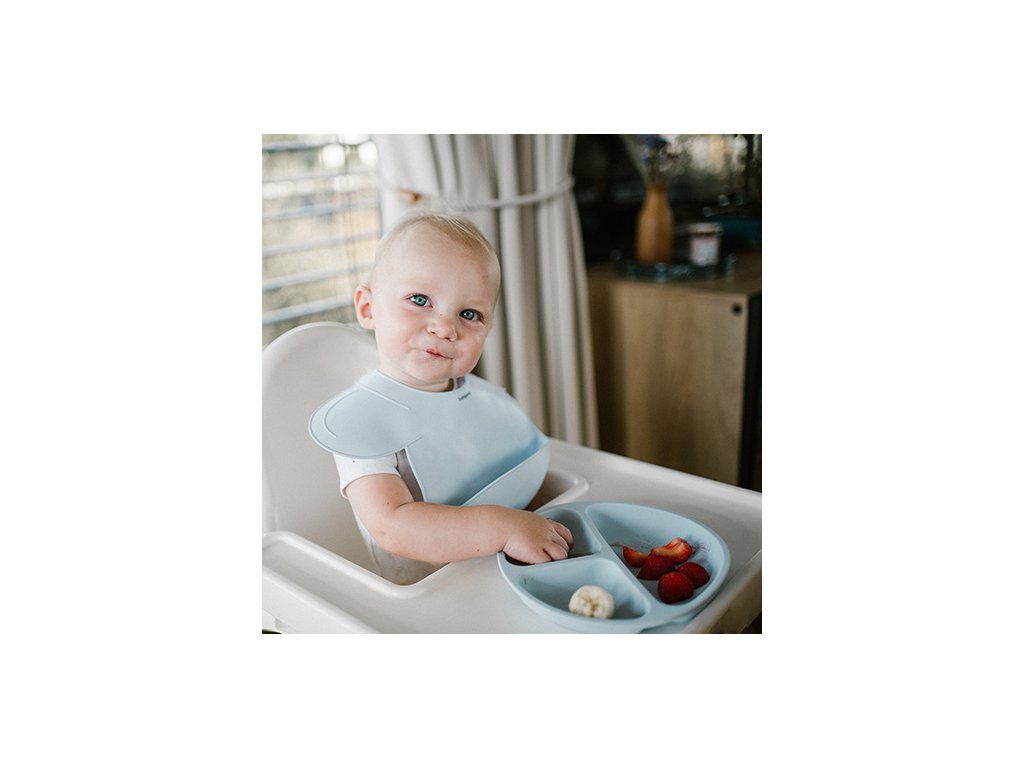 Silikonový bryndák se dokonale přizpůsobí tvaru dítěte, čímž mu poskytuje pohodlí. Díky zaobleným okrajům bryndák chrání větší část oblečení dítěte před znečištěním. Ideální pro objevování nových chutí bez obav z nečistot.