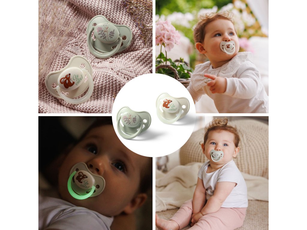 - Denní a noční dudlík – v balení naleznete jednu klasickou a jednu se svítící rukojetí, kterou snadno najdete i ve tmě