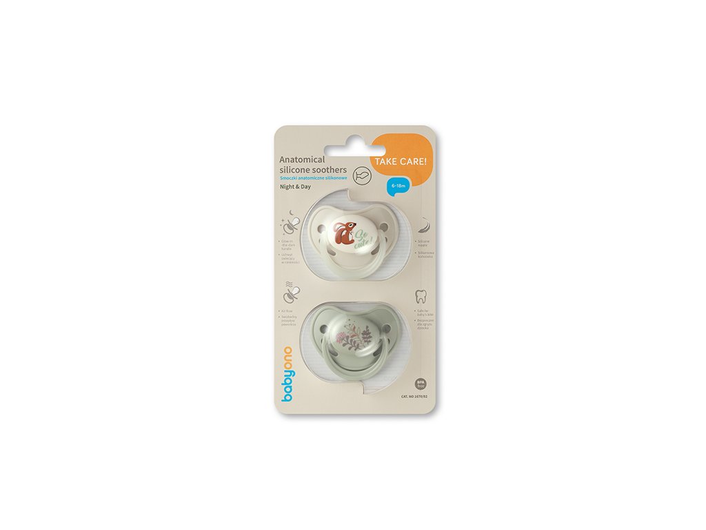 BABYONO Dudlíky silikonové anatomické 6-18m, 2 ks