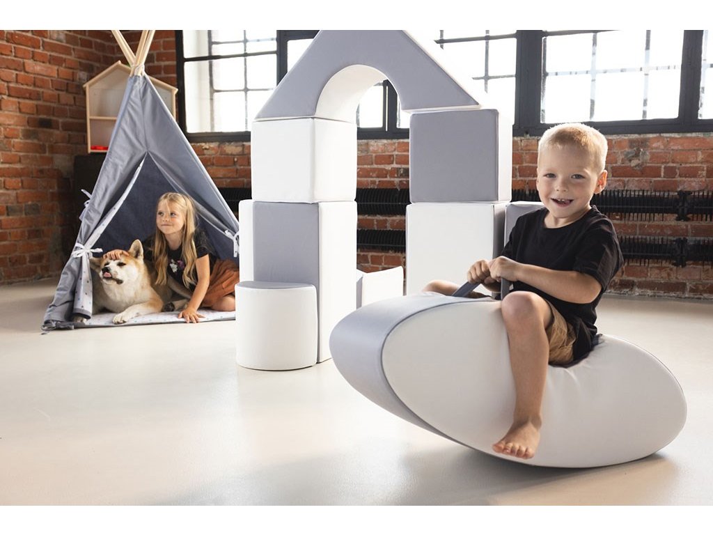 Houpačka se dá využít jak na hraní, tak i jako pohodlné sedátko a skvěle doplňuje ostatní sady pěnových bloků.