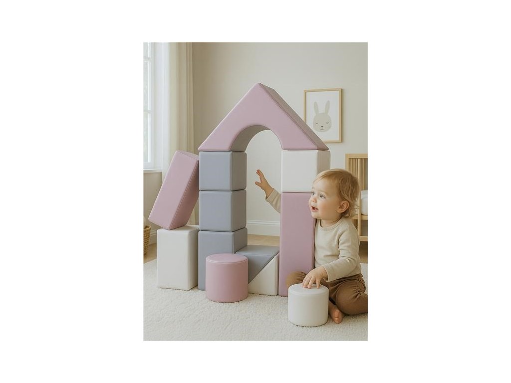 Pěnové kostky-obří stavebnice 11 ks white-light pink-grey